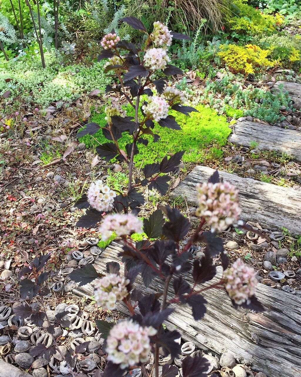 アメリカテマリシモツケディアボロ サマーワイン 雑木と宿根草とクレマチスの小さな庭づくり