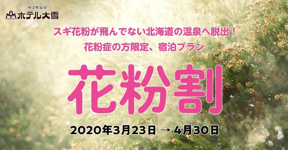 スギ花粉がない北海道の温泉へ 花粉症の方限定の宿泊プラン 花粉割 がスタート 4000円off 北海道層雲峡温泉 ホテル大雪 Note