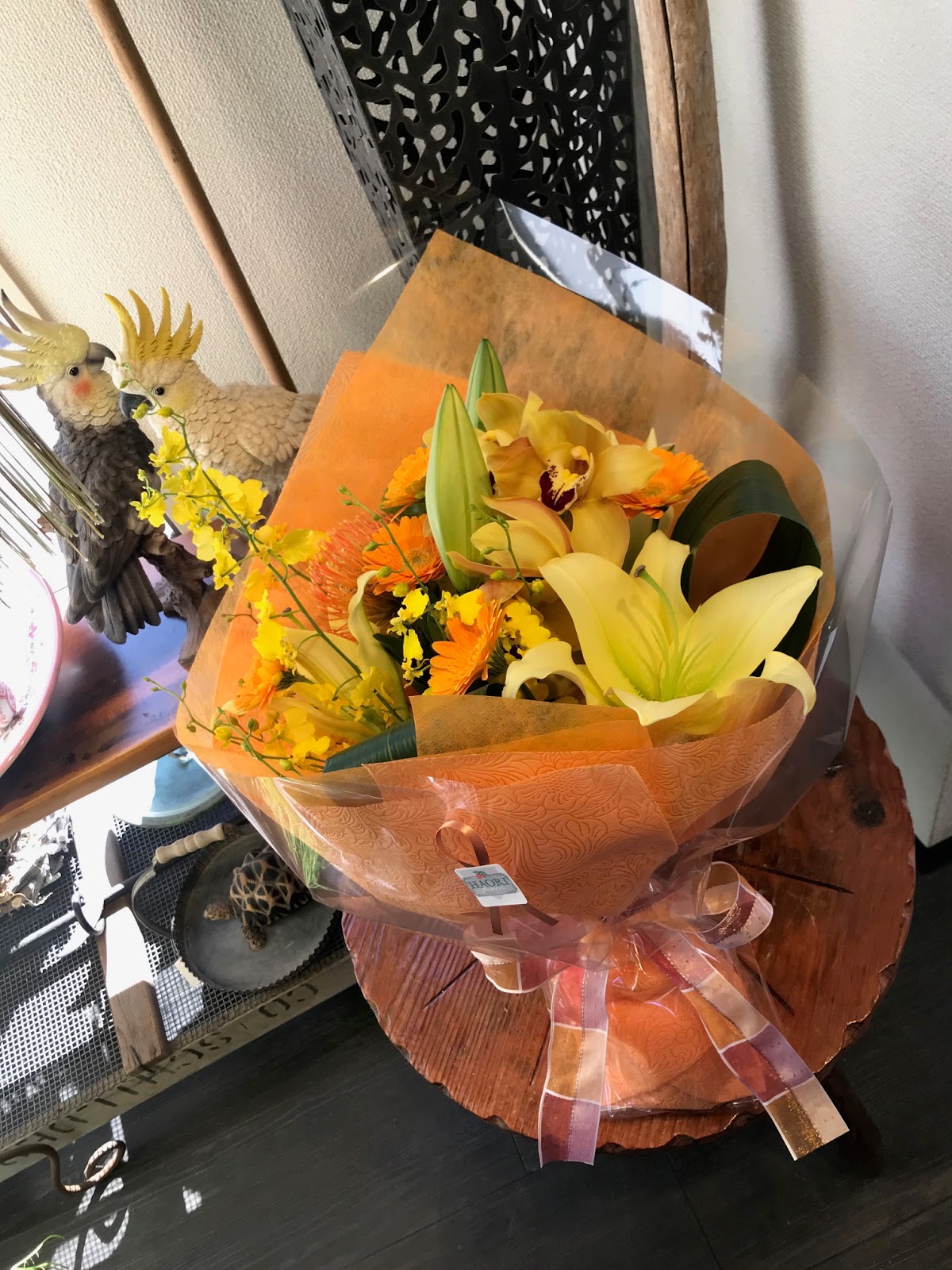 葉織 Haori Flowers 新宿区のお花屋さん 胡蝶蘭 キャロット を入れたフラワーギフト