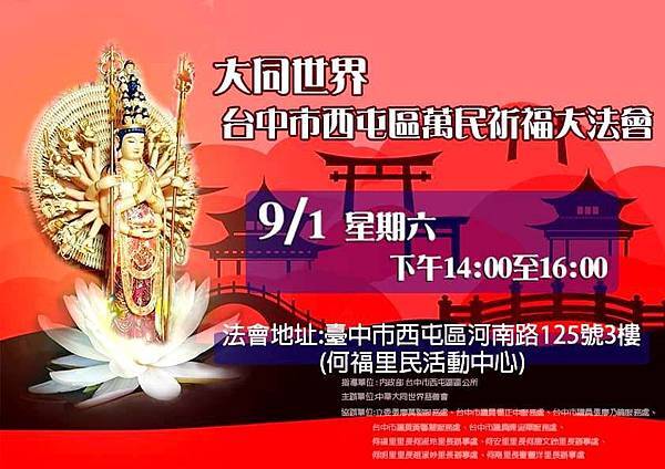 107年9月1日大同世界台中市西屯區萬民祈福大法會 大同世界聯合慈善協會